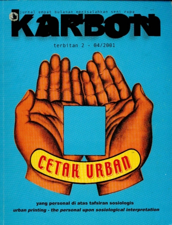 The first edition of Karbon journal is published in 2000 in two languages, Indonesian and English, for 1,000 copies and distributed freely in several art spaces in Indonesia and abroad. The edition discusses about public art and art in public; two different issues that often become a source of confusion in the Indonesian contemporary art criticism.
